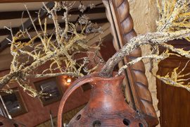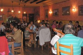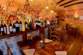 Queremos que te sientas como en casa, hemos decorado la Tasca con tonos cálidos, mobiliario rústico, suelos de madera y luces indirectas en apliques y lámparas de alfarería.