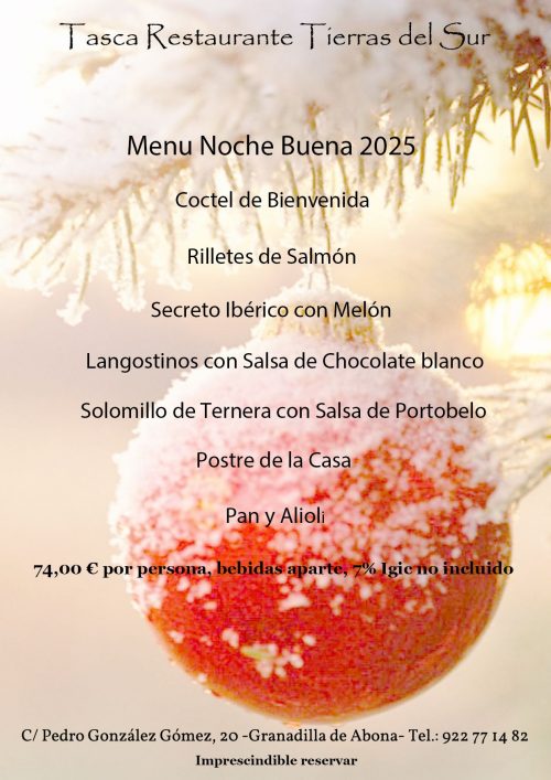Disfruta de nuestros Menús Especiales para Noche Buena y Noche Vieja en un ambiente acogedor y relajado. Solo con reserva.